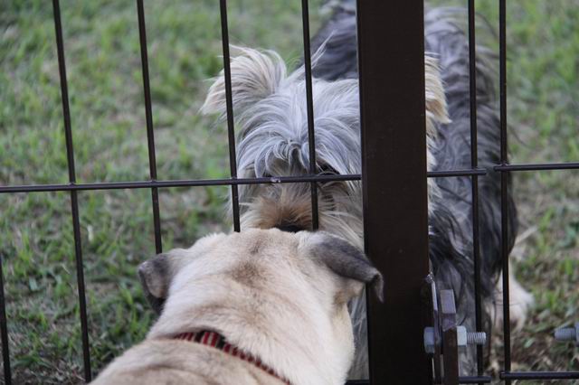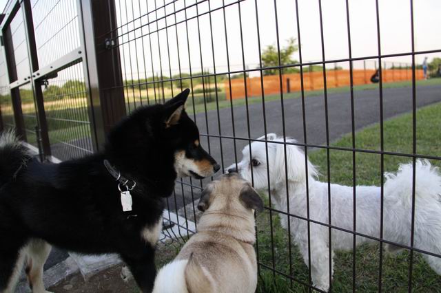 隣りの小型犬エリアからも、いろんなワンコが声かけてくれますよ♪