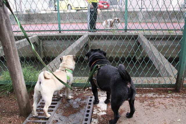 パグ2匹連れて行くと、珍しいのか囲われちゃって