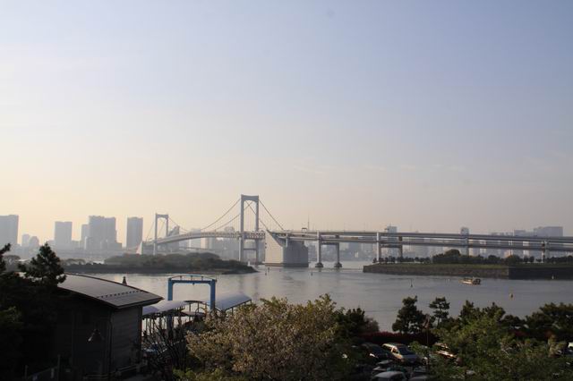 レインボーブリッジを背景に記念写真撮ろうと・・・