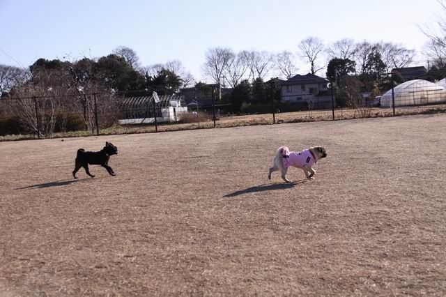今日も元気に仲良く走るまめ蔵クンと茶々チャン♪