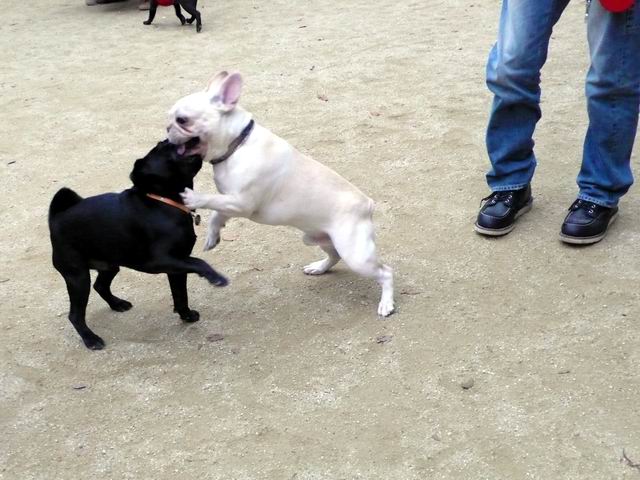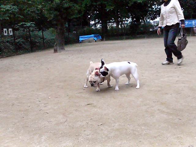 周りのワンコを追っ掛けたり・・・逆に追っ掛けられてパパママの所へ