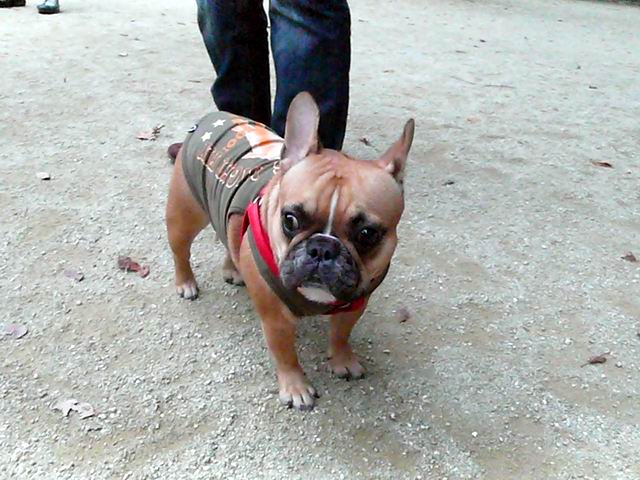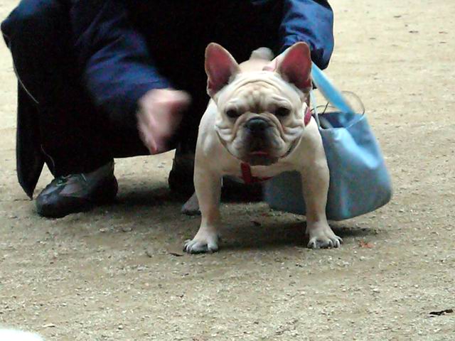 いつも飼主さんのおじさんにくっついて、