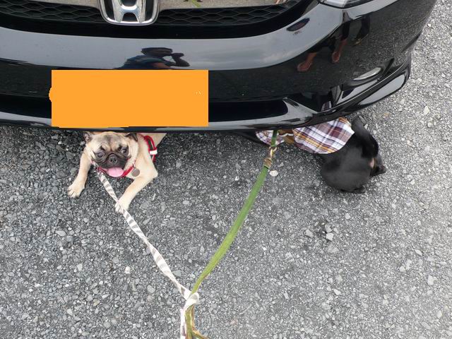 駐車場で、わが家の兄妹が不思議な行動に出ましたよ。