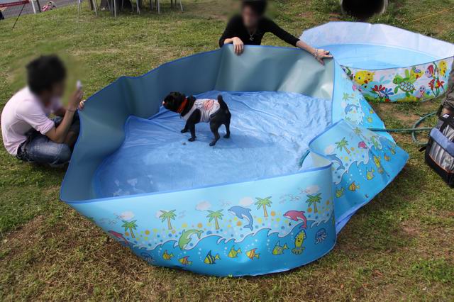 自ら喜んでプールに飛び込むく~太と