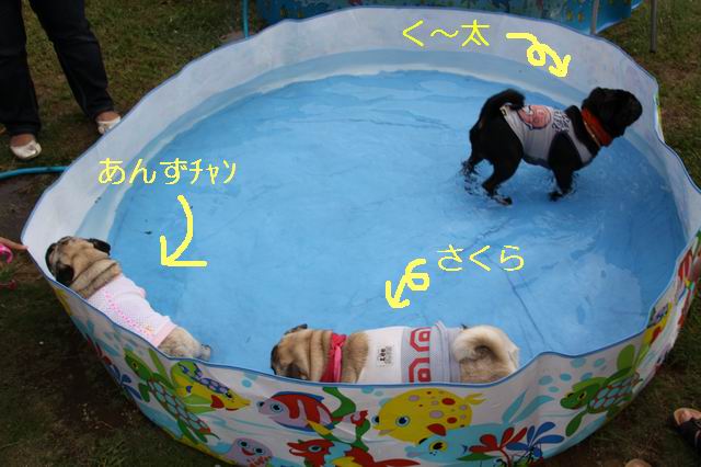 無理矢理、プールに入れられたあんチャン♪とさくら♪